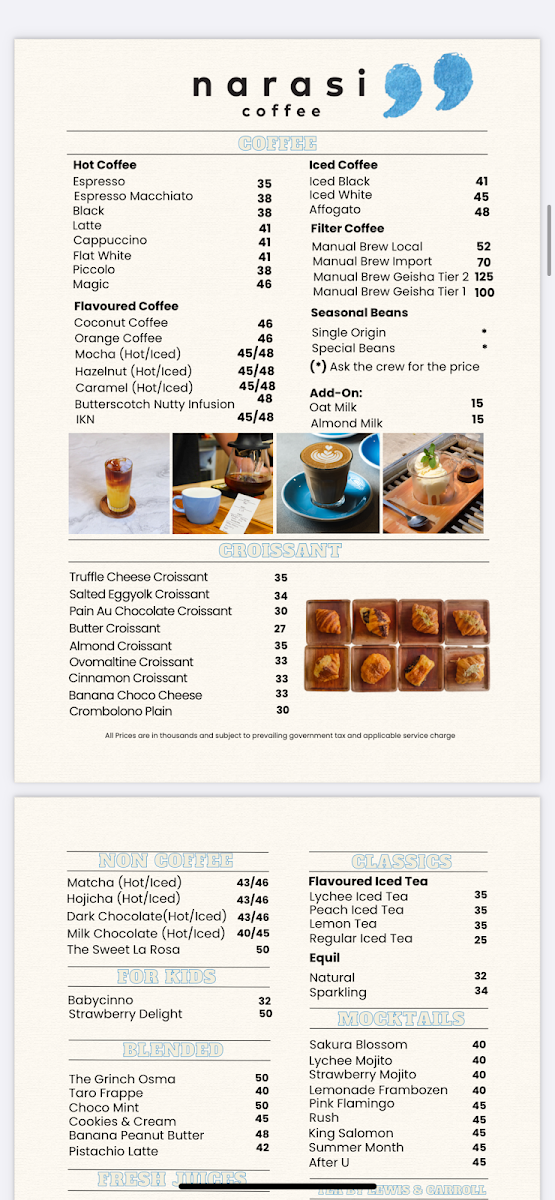 Whether you're indulging in their truffle mushroom pasta or enjoying a casual coffee catch-up, Narasi promises a memorable experience in a chic, comfortable setting.
